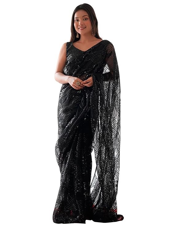 • Saree Pattern Type: Embellished || Saree Print Or Pattern Type: Embellished || Blouse Print Or Pattern Type: Embellished || Saree Border: Embellished