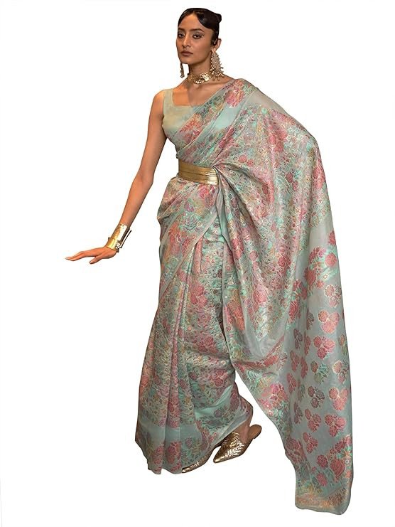 AKHILAM Women's Silk Blend Woven Design Saree With Unstitched Blouse Piece (KAAZI257001_RJ_Parent)