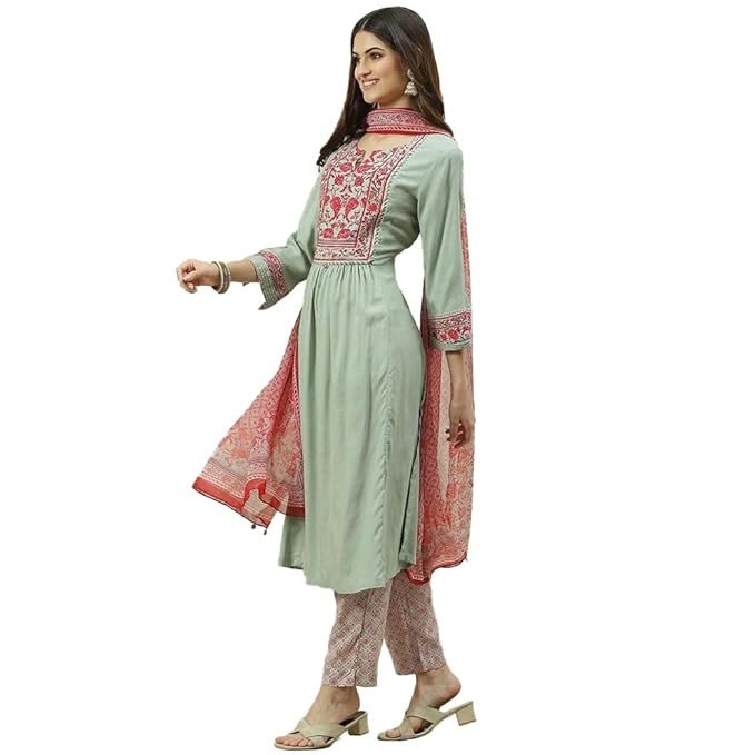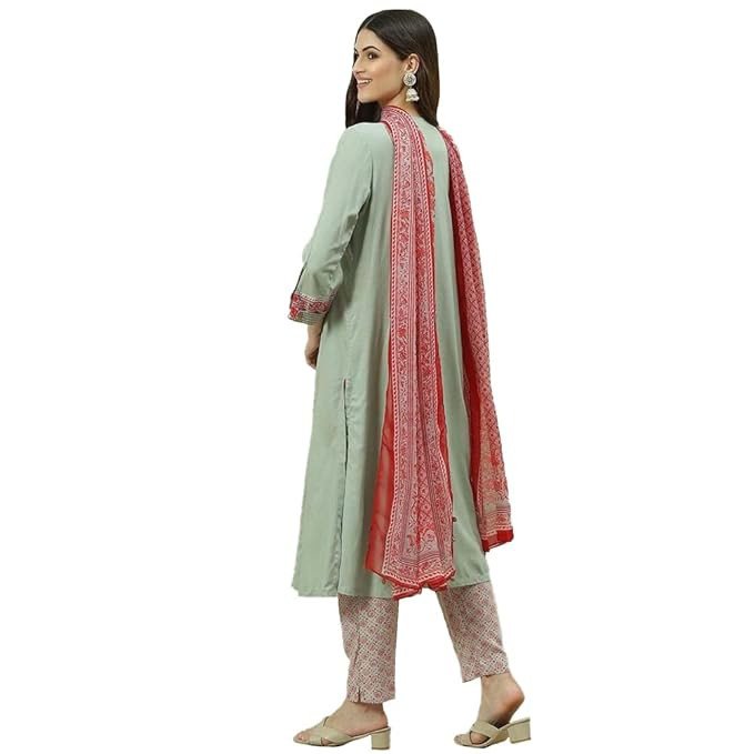 BIBA Women Cotton Solid Narrow Salwar Kurta Dupatta