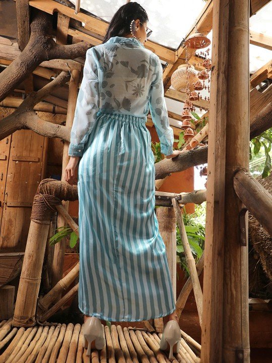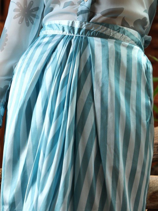 Blue Striped mid-rise Skirt, has Slip-On closure, and Straight hem