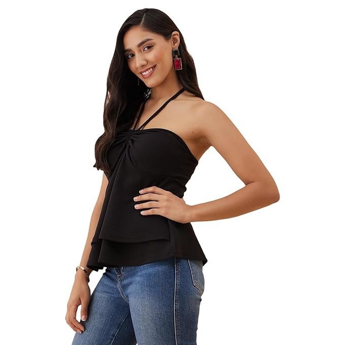lime green knitted casual solid tube top, has a halter neck, sleeveless, solid, no sleeves, regular length
