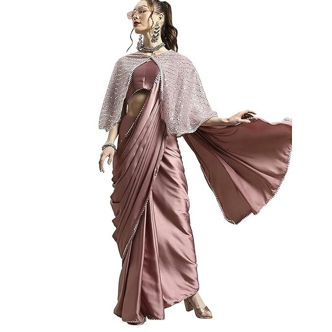 Womanista Dusty Pink Solid Poly Crepe Saree With Embellised Cape(WM1946_Dusty Pink_Onesize)