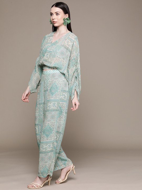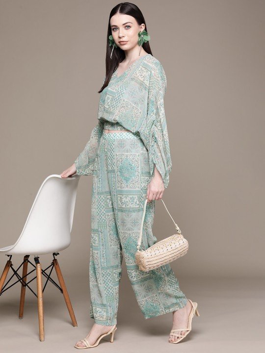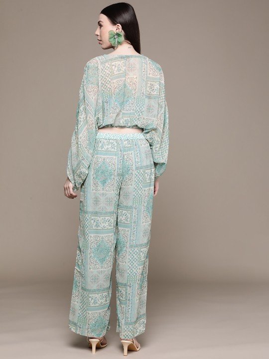 Women Printed Crop Top with Trousers